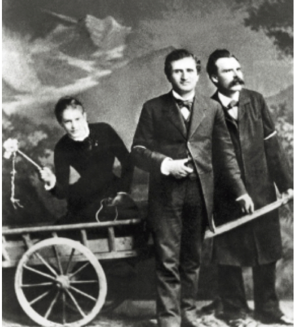 The novel begins with a meeting in October 1882 at a cafe in Venice where Lou Andreas Salome, then a young good looking and sophisticated Intellectual woman, asked Dr. Breuer to help her friend Nietzsche as he was deeply depressed and would probably kill himself. “It would be a great loss for me, and a great personal tragedy because I would bear some responsibility,” she pleaded. Andreas explained that Nietzsche was madly in love with her and after living together in a “chaste” ménage à trois which also included Paul Rée, another philosopher and Nietzsche’s disciple many years before. The “intellectual honeymoon of our unholy Trinity was also brief. Fissures appeared”, Andreas explained that Nietzsche was deeply hurt when she refused his marriage proposal. This affair briefly mentioned in the novel happened in real life and is well documented, including a famous photograph taken in Lucerne showing Nietzsche and Rée pretending to pull a cart with Lou Andreas inside brandishing a small whip —- many attributed this moment, regarding the problem with Lou Andreas to a famous quote from Thus Spake Zarathustra, First part XVIII. Old and Young Women: “Thou goest to women? Do not forget thy whip!”